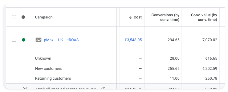 This gives both you and your campaigns more insights into how the split between new vs. returning customers is on the campaign level